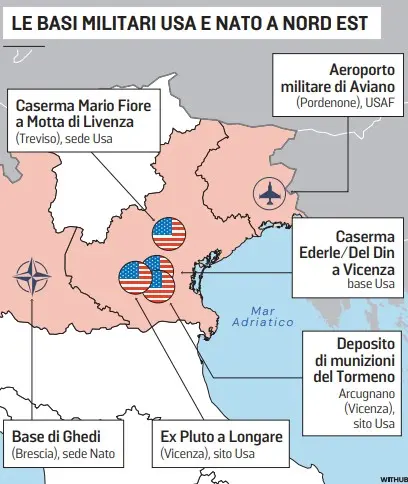 Basi Usa in Italia, cinque su nove sono a Nord Est: ecco la mappa