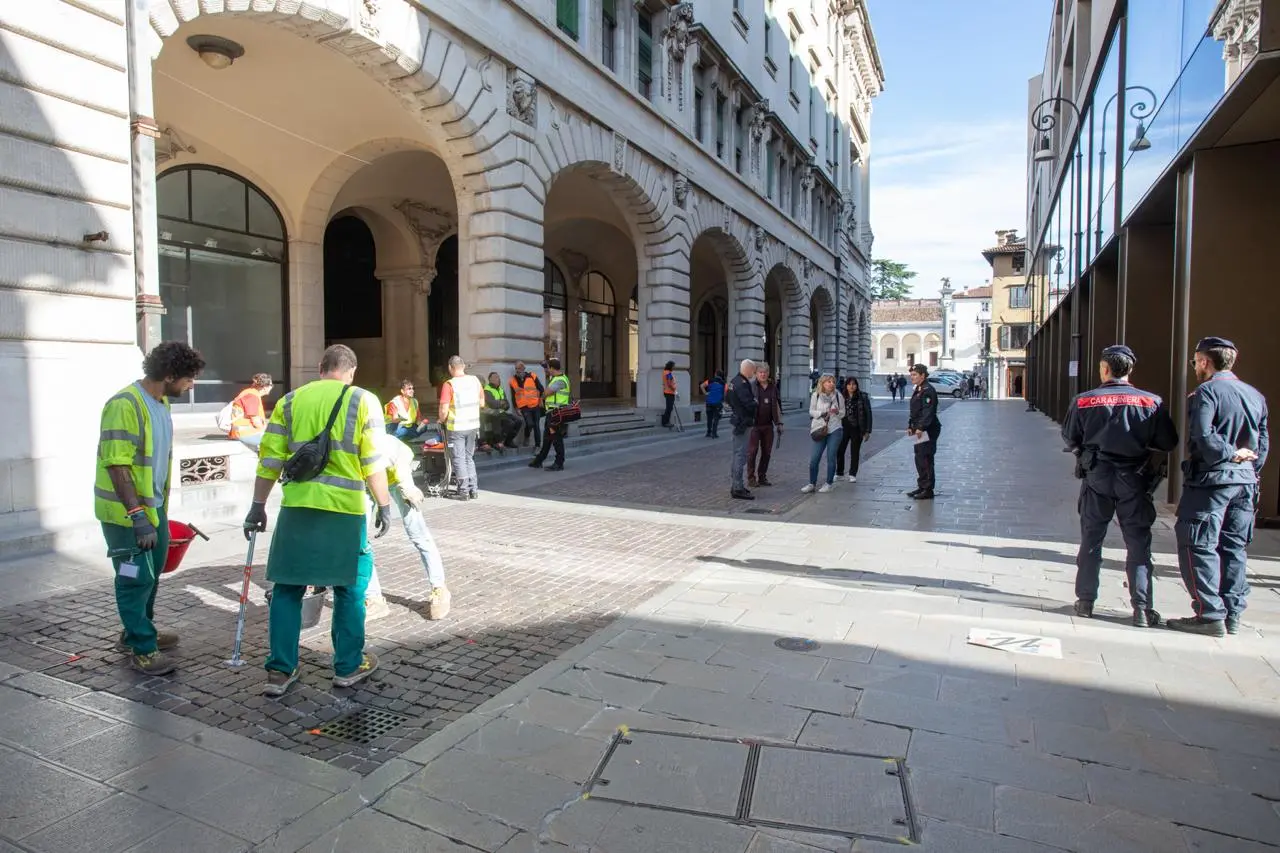 Cestini sigillati, negozi che chiudono in anticipo: cosi Udine si sta preparando al corteo che oggi attraverserà la città. Previste diecimila persone alla manifestazione ProPal, per ordinanza tutti i dehors devono essere rimossi