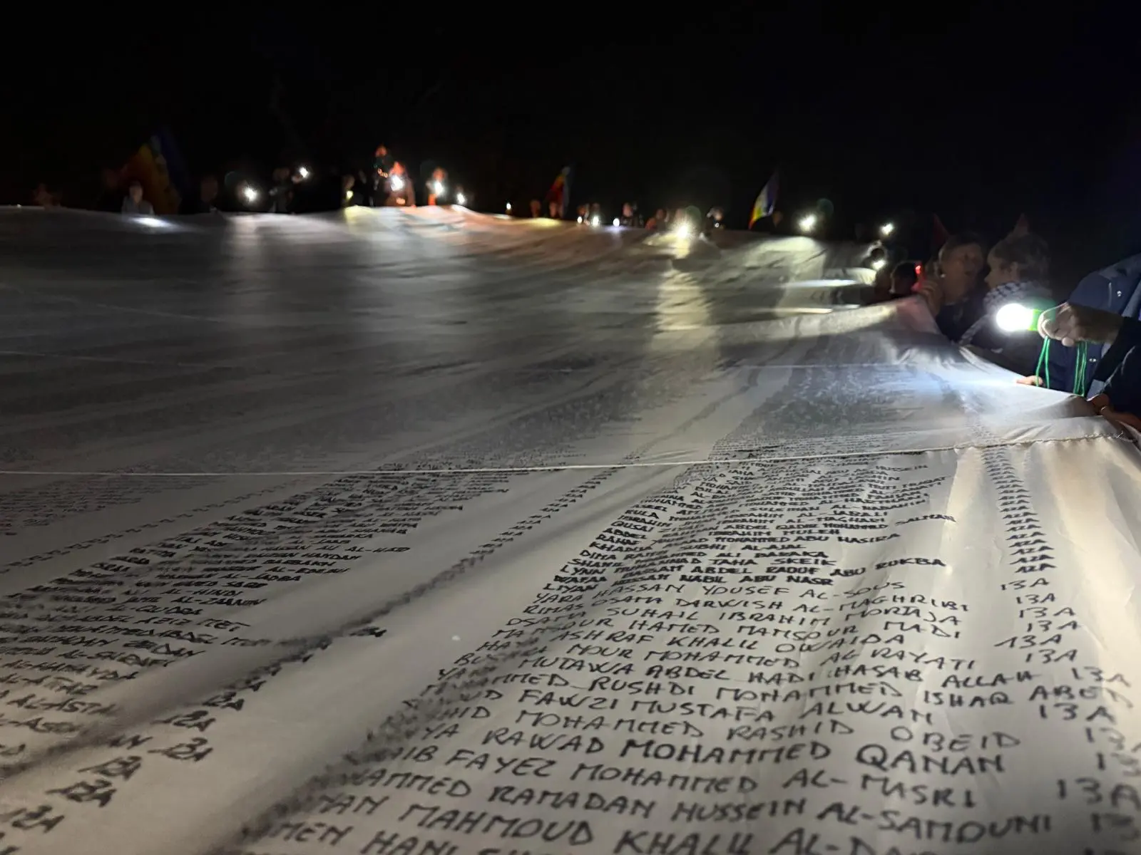 Lo strisicione con i nomi dei bambini morti a Gaza