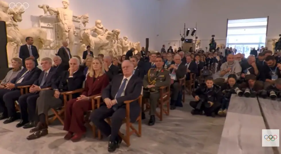 Il presidente della Repubblica ellenica, Konstantinos Tasoulas, è arrivato nel museo archeologico di Olimpia, accolto dal picchetto d'onore della Guardia presidenziale. Presenti per l’Italia il presidente di Fondazione Milano Cortina, Giovanni Malagò, la campionessa di sci di fondo Stefania Belmondo e la leggenda dello slittino Armin Zoeggeler.