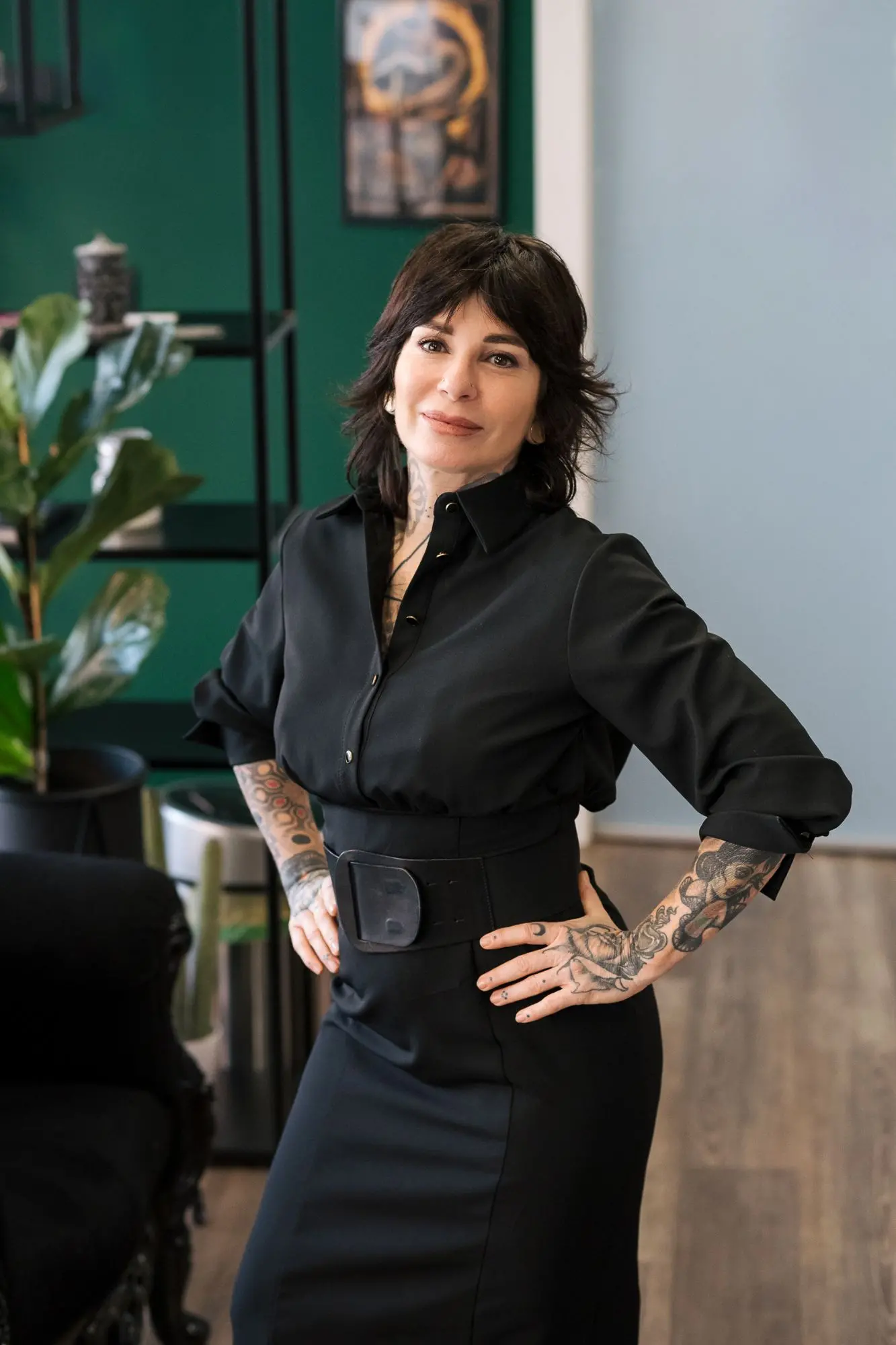 «Ho sempre voluto fare questo, quando poi ho capito che era possibile tatuare anche il viso, mi si è aperto un mondo. Ho frequentato l’Istituto d’arte, ma non l’ho finito perché volevo essere indipendente. Ho iniziato a fare la commessa, lavorando undici anni da Nacci sport a Pordenone, un bel periodo della mia vita. Ventuitude anni fa mi fecero un tatuaggio fatto male e, da perfettina quale sono, volevo assolutamente Sporre rimedio, ma non trovavo nessuno che potesse aiutarmmi. Sono andata andata a Milano, da quella che sarebbe diventata la mia maestra, per farmi sistemare il tatuaggio e una volta arrivata nel suo studio, quando è stato il momento di pagare le ho detto: “Io voglio fare questo nella vita, dimmi come e lo farò”. Così ho iniziato a frequentare l’Accademia a Milano. Il lunedì il negozio era chiuso e andavo a Milano».