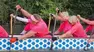 Le trenta Ugo salgono sulle imbarcazioni e, pagaie in acqua, iniziano la loro ora di allenamento.
