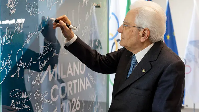 Lì ha incontrato il presidente della regione Lombardia, Attilio Fontana, il sindaco Giuseppe Sala e il presidente della fondazione Milano Cortina Giovanni Malagò. Dopo essersi intrattenuto con loro qualche minuto, all’esterno dell’edificio, è entrato nel villaggio olimpico attraverso la passerella tra i due corazzieri. Lì ha raggiunto il murale dedicato alla tregua olimpica, prima del pranzo nella mensa, insieme agli atleti.