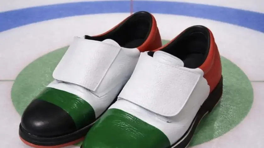 Curling: le scarpe tricolori di Giovanella personalizzate a Treviso
