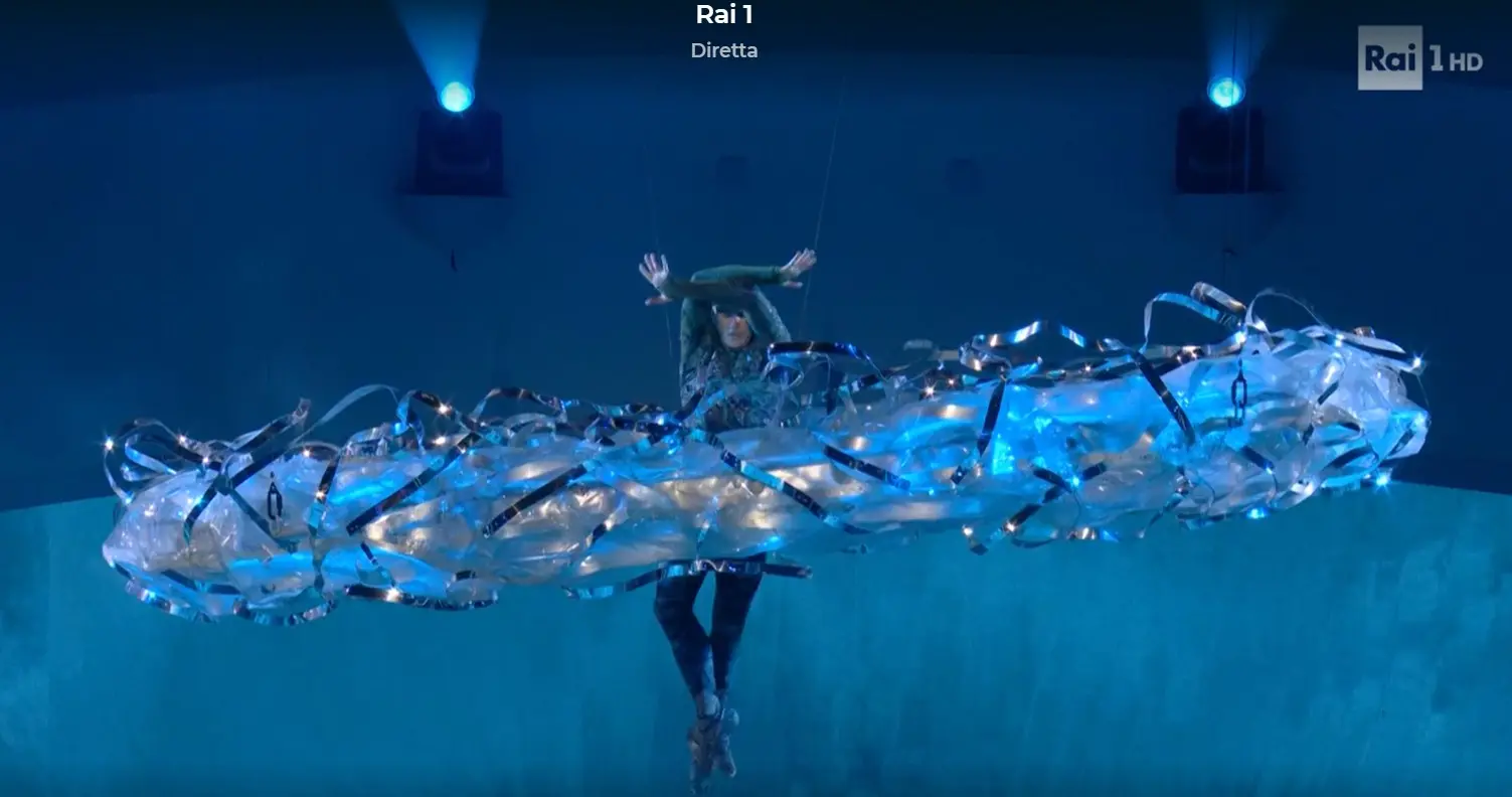 Momento di grande suggestione alla cerimonia finale: Roberto Bolle si esibisce in una performance aerea, sospeso sopra il palco e accompagnato dalle note di Joan Thiele. Sull'Arena si forma un sole che rimarrà fino alla fine della cerimonia.