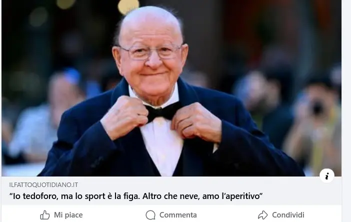 «Massimo Boldi tedoforo per le Olimpiadi Milano-Cortina 2026. Dopo l’Uomo Gatto e Achille Lauro, la fiaccola dei Giochi finisce nelle mani di “Cipollino”. Boldi, ma che succede, è diventato uno sportivo? Un grande atleta. E di quale disciplina? La figa. Ho qualche dubbio che risulti tra le discipline olimpiche in programma… Forse».