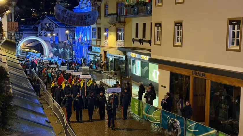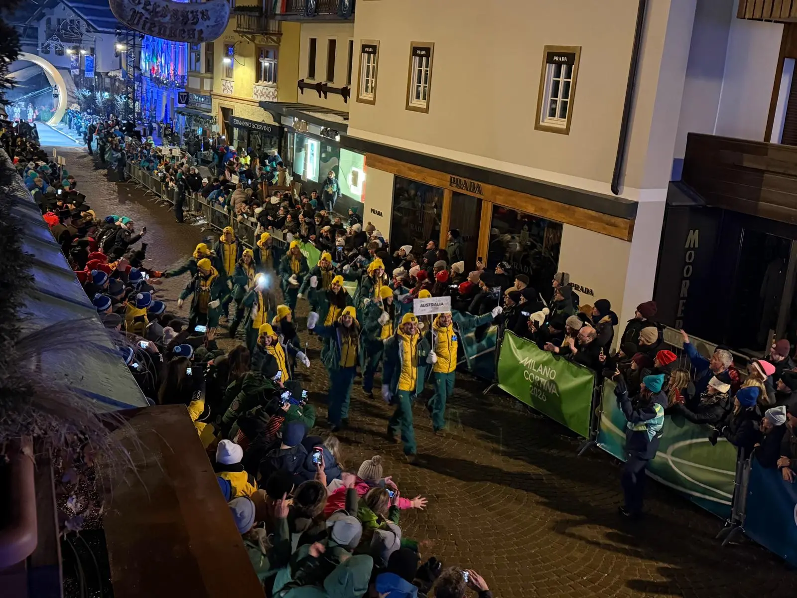 A Cortina è iniziata la pre-sfilata della cerimonia di apertura dei Giochi 2026. Lungo corso Italia numerose associazioni locali, il Corpo musicale di Cortina e i Sestieri ampezzani.