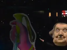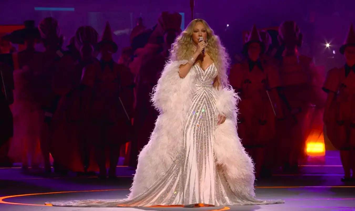 In una nuvola di di piume e paillettes, ecco Mariah Carey intonare "Nel blu dipinto di blu", omaggio a Domenico Modugno e all'Italia. E lo stadio di San Siro a cantare con lei.
