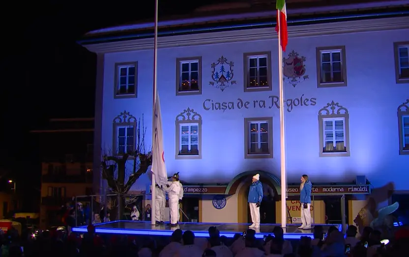 Franco Nones, ex fondista, e Martina Valcepina, campionessa di short track, a Cortina hanno consegnato la bandiera olimpica che è poi stata issata in centro. Resterà fino a domenica 22 febbraio.