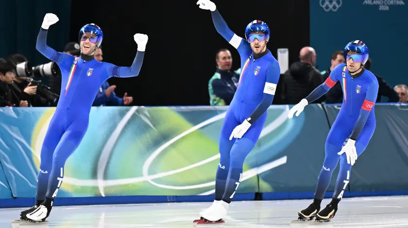 Davide Ghiotto, Andrea Giovannini e Michele Malfatti conquistano l’oro nell'inseguimento a squadre nel pattinaggio di velocità contro gli Usa. Trump forse a Milano per la finalissima di hockey tra Canada e Usa