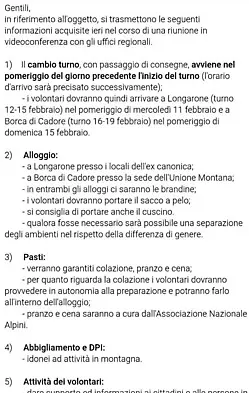 Le altre direttive? Da viaggio scout. Rivolte a volontari che, si legge sempre nella mail inviata mercoledì, avranno il compito di «dare supporto e informazioni ai cittadini e alle persone in transito, supportare la polizia locale e intervenire in caso di nevicate eccezionali».