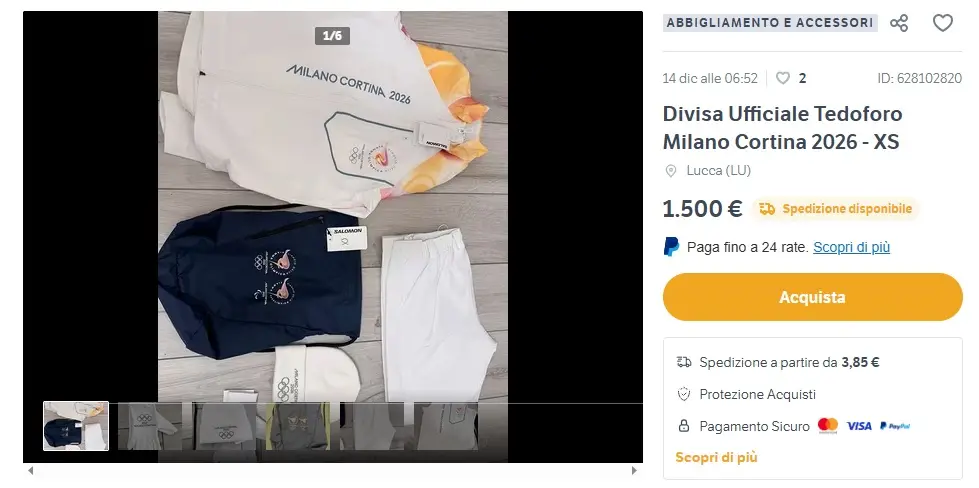 L’utente lameringag, invece, propone la stessa tuta, sempre taglia M, a un prezzo di 500 euro. E anche lui specifica: «Entra nella storia dei Giochi Invernali con questo capo assolutamente introvabile: la Tuta Ufficiale del Tedoforo delle Olimpiadi Invernali Milano Cortina 2026! Questa non è merchandise ordinaria: è l'uniforme ad alte prestazioni fornita dallo sponsor tecnico Salomon, un vero e proprio simbolo del percorso olimpico».