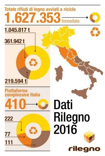 “Il legno è un materiale naturale, prezioso, riciclabile all’infinito – dichiara Nicola Semeraro, presidente di Rilegno – La sua valorizzazione da rifiuto a risorsa per il circuito produttivo e industriale genera benefici ecologici ed economici: riciclare il legno significa risparmiare energia, migliorare la qualità dell’aria evitando gli sprechi. L’industria italiana del riciclo del legno – aggiunge Semeraro – è un’eccellenza riconosciuta in Europa e funziona grazie a Rilegno. Le percentuali di riciclo sono molto soddisfacenti e costantemente oltre i limiti fissati dalla legge e ci permettono di guardare con ottimismo anche ai target che la Commissione Europea sta definendo per il futuro, con un innalzamento della quota di riciclo che dovrà arrivare all’80% entro il 2030”.