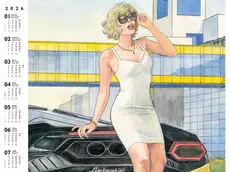 L’illustrazione del celebre fumettista italiano è dedicata alla partnership con Automobili Lamborghini. Sullo sfondo, infatti, anche un’anteprima del nuovo stabilimento TEXA che verrà inaugurato nel 2026