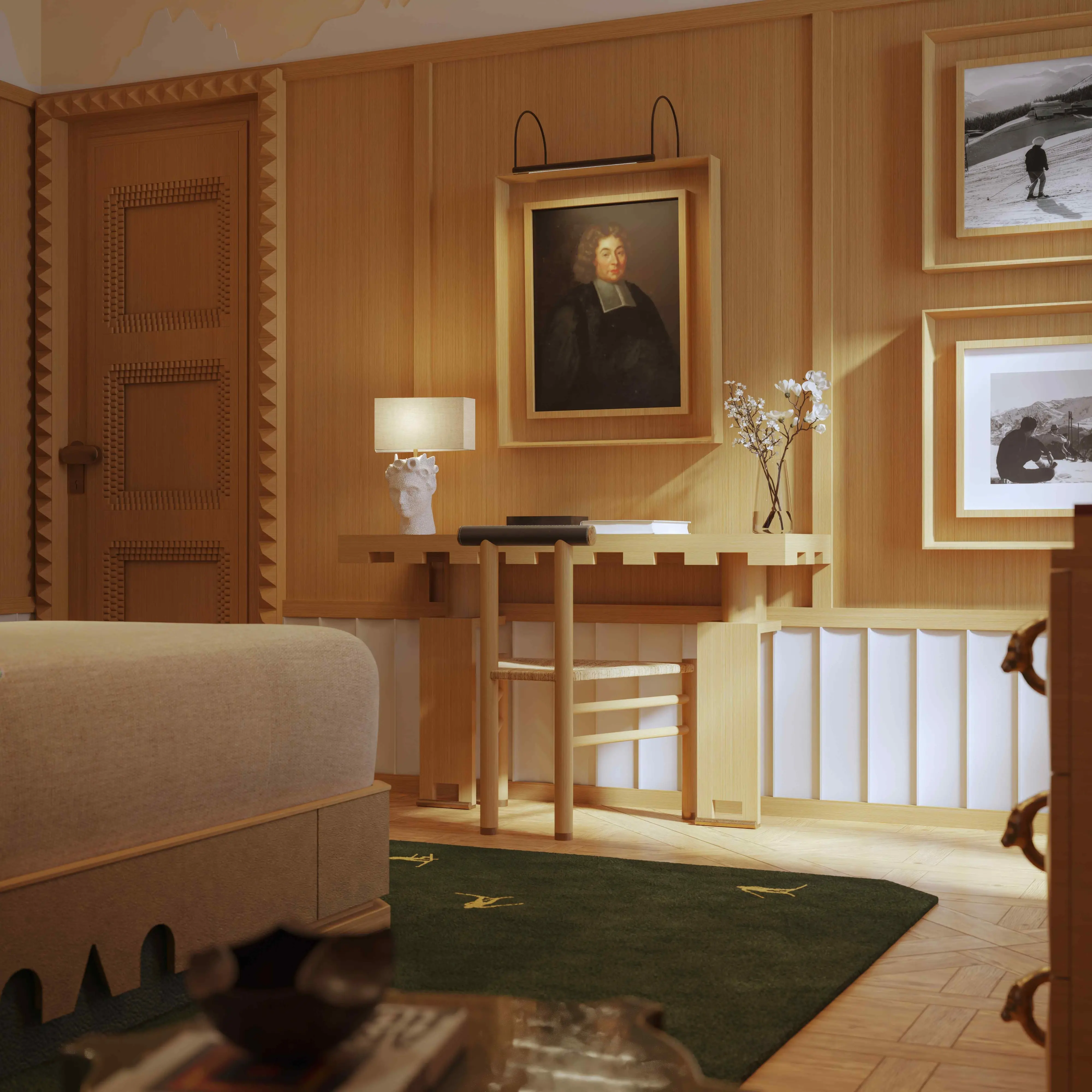 A Cortina, Le Graal prende forma dal recupero dell’ex Hotel Italia, ospitato in un edificio degli anni Venti a breve distanza dal centro e dagli impianti sciistici. Il progetto, firmato dall’architetto Achille Salvagni, rilegge il concetto di rifugio alpino in chiave contemporanea, attraverso un linguaggio materico che alterna legni chiari spazzolati, marmi dalle tonalità naturali e superfici lavorate per enfatizzare profondità e tattilità. Le camere sono 30, di cui 13 suite, tutte affacciate sul panorama dolomitico. Completano l’offerta un ristorante, un bistrot con american bar e una spa aperta anche agli ospiti esterni.