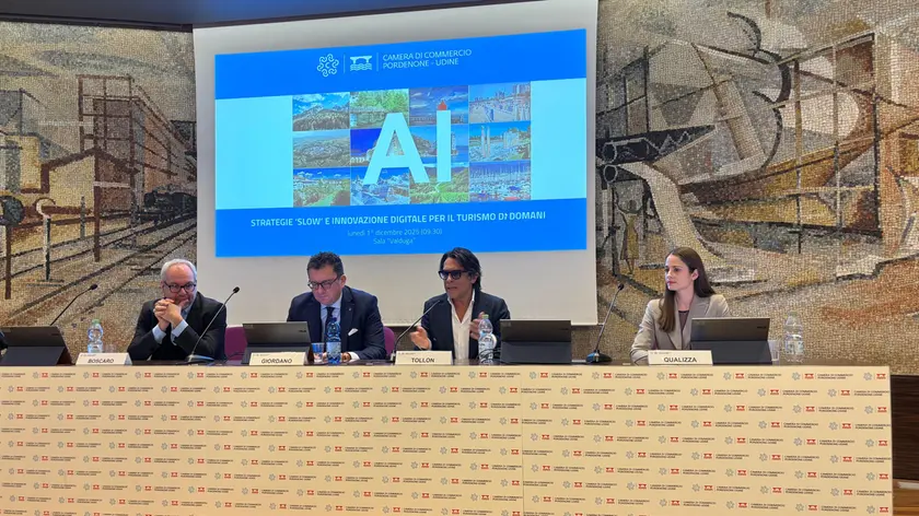 Per le imprese di Pordenone e Udine l’Intelligenza artificiale è un’opportunità che necessita urgentemente di competenze e supporto territoriale. È questa l’esigenza più immediata emersa dal primo sondaggio sulla percezione e l'uso dell'ai condotto dal Centro Studi della Camera di Commercio di Pordenone-Udine. I risultati, inediti, sono stati presentati oggi (lunedì 1° dicembre) in apertura del convegno "Ai e turismo, strategie slow e innovazione digitale per il turismo di domani". L’approfondimento, come ha detto in avvio il consigliere camerale Alessandro Tollon, intervenuto in rappresentanza del presidente Giovanni Da Pozzo, «vuole essere ponte tra i bisogni rilevati e le soluzioni pratiche, perché in un mondo complesso come quello di oggi, in cui la competizione è mondiale e tutto cambia a velocità vertiginose, le nostre pmi devono avere strumenti operativi e immediatamente utilizzabili non solo per stare sul mercato, ma per sapersi sviluppare e crescere. Innovazioni come l’ai non sono affatto in contrasto con l’idea di un turismo esperienziale, culturale, enogastronomico e slow, vocazione naturale di un territorio come il nostro, ma sono anzi strumenti del mestiere con cui le imprese devono essere in grado di destreggiarsi proprio per valorizzare al meglio la loro proposta unica». Una proposta turistica su cui si è soffermato il direttore centrale Attività produttive e turismo della Regione, Massimo Giordano, che ha poi offerto un quadro sul valore del turismo slow regionale, analizzando risultati e strategie, dal sistema di piste ciclabili alla nautica.
