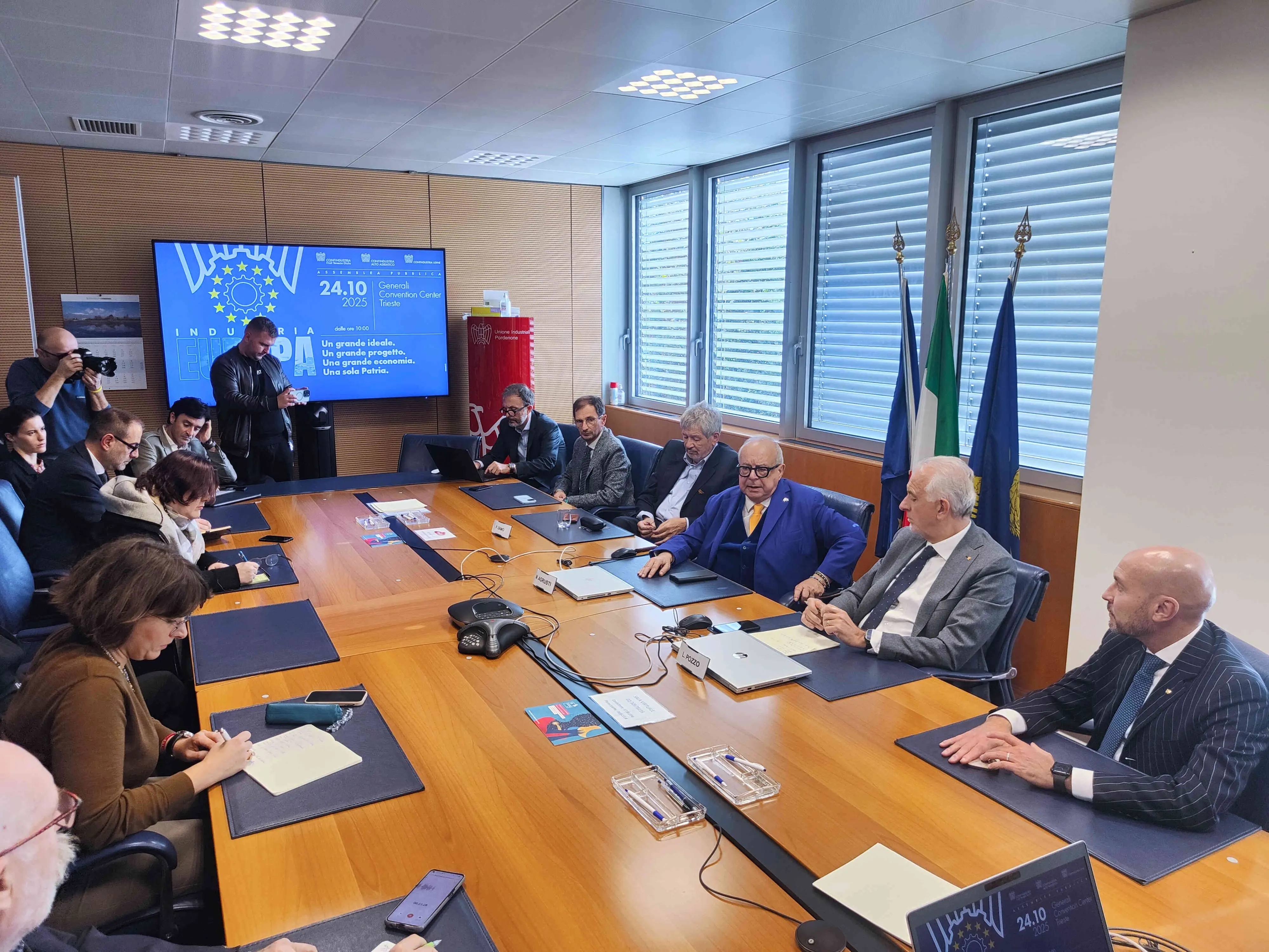 Pierluigi Zamò, Presidente di Confindustria Friuli Venezia Giulia, ha espresso orgoglio per la realizzazione dell'assemblea congiunta, invitando a "rivestire" il Vecchio Continente di un ideale nuovo. Ha ricordato come per le generazioni più giovani, cresciute con Erasmus e mobilità, l'Europa sia una realtà naturale.