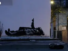 Due bambini sdraiati a terra che guardano il cielo, il nuovo murale di Banksy a Londra