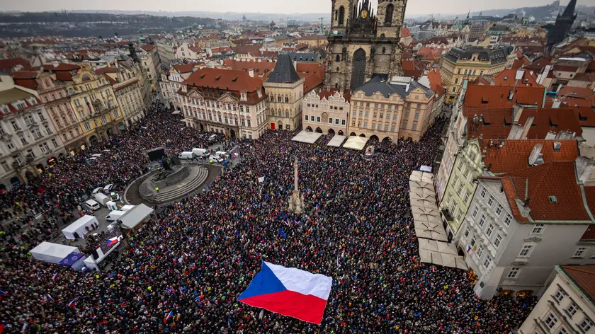 Decine di migliaia in piazza a Praga a sostegno del presidente