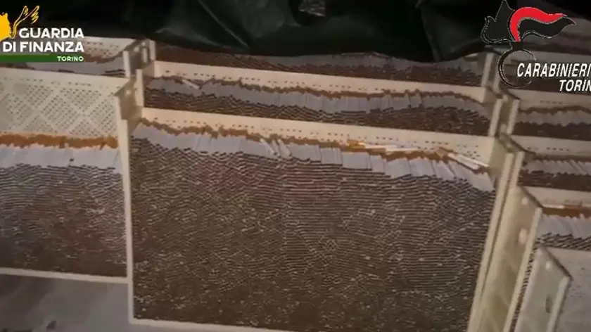 (ANSA) - TORINO, 22 OTT - La Guarda di finanza e i Carabinieri dei comandi provinciali di Torino, coordinati dalla Procura, hanno scoperto e sequestrato cinque siti di produzione e due di stoccaggio di sigarette di contrabbando, mimetizzati in zone industriali. All'interno c'erano oltre 230 tonnellate di tabacco lavorato extra Ue, più circa 22 tonnellate di sigarette, in gran parte già in pacchetti con noti marchi, contraffatti, di cui sono stati trovati 538 milioni di componenti tra filtri e cartoncini. La stima è che siano stati prodotti 48.000 pacchetti al giorno, quindi almeno 35 milioni in totale, per un guadagno di 175 milioni di euro, con evasioni di accise per 112 milioni e di Iva per 28 milioni. Otto gli arresti, di persone ucraine, rumene e moldave. L'operazione, denominata Chain Smoking, è stata effettuata non solo contro il contrabbando di tabacchi lavorati, ma anche per contrastare reati quali riduzione in schiavitù, tratta di persone, intermediazione illecita e sfruttamento del lavoro. Il personale, proveniente da paesi dell'Est europeo, veniva di fatto rinchiuso nelle fabbriche, costretto a turni massacranti, senza riposo e privato di ogni forma di tutela. (ANSA).