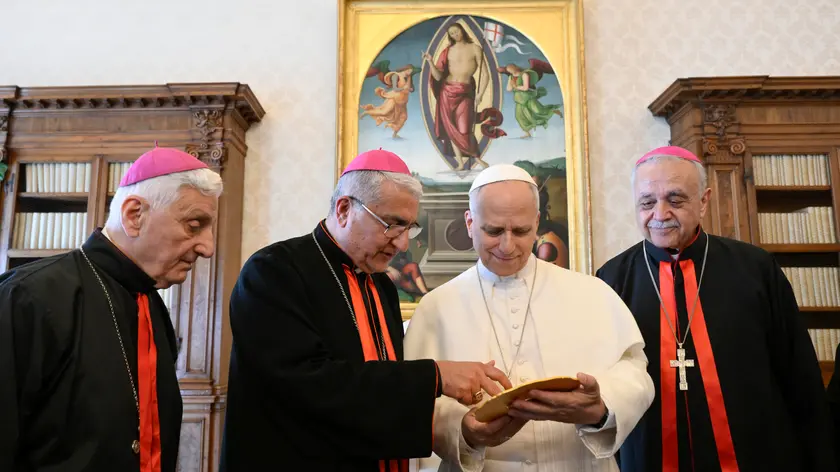 (ANSA) - ROMA, 10 APR - "Siete segni di speranza in un mondo segnato da violenze assurde e disumane, che mosse dall'avidità e dall'odio, dilagano con ferocia proprio nelle terre che hanno visto sorgere la salvezza", "profanate dalla blasfemia della guerra e dalla brutalità degli affari, senza riguardo per la vita della gente, ritenuta al massimo effetto collaterale dei propri interessi. Ma nessun interesse può valere la vita dei più deboli", "aiutateci a proclamare chiaramente che Dio non benedice alcun conflitto" che "chi è cristiano non sta mai dalla parte di chi ieri impugnava la spada e oggi lancia le bombe". Così il Papa ai vescovi di Baghdad. (ANSA).