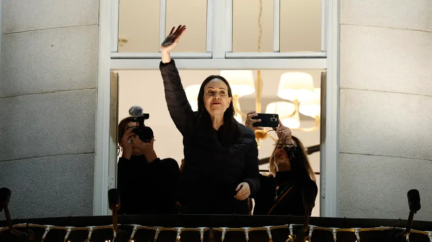 La politica venezuelana ha salutato i sostenitori dal balcone a Oslo