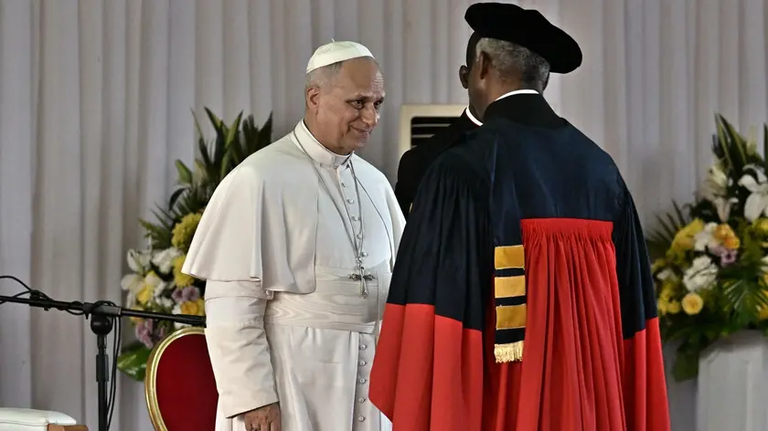 (ANSA) - YAOUNDÉ, 17 APR - Il Papa incoraggia il mondo universitario a trasmettere valori come "la giustizia e l'equità, l'integrità, il senso del servizio e della responsabilità. L'Africa e il mondo" hanno bisogno di persone che si impegnino a "mettere le loro competenze al servizio del bene comune. Non tradite questo nobile ideale!". Parlando ai docenti della Cattolica ha sottolineato che l'Africa ha bisogno "di essere liberata dalla piaga della corruzione". "Testimoniando la verità, specialmente davanti alle illusioni dell'ideologia e delle mode, create un ambiente in cui l'eccellenza accademica si unisce naturalmente alla rettitudine umana". (ANSA).