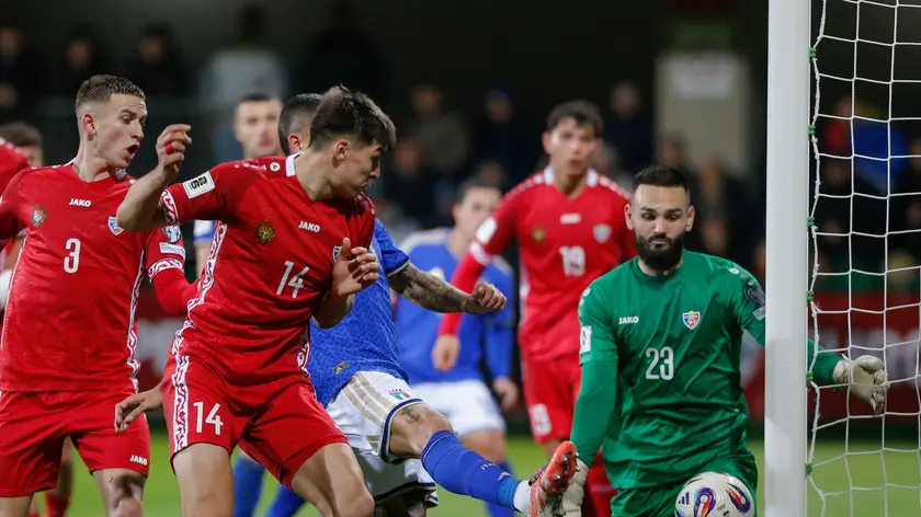 (ANSA) - ROMA, 13 NOV - Moldavia-Italia 0-2 (0-0) nel penultimo appuntamento delle qualificazioni Mondiali a Chisinau. Gattuso cambia rispetto all'undici tipo: in campo Raspadori e Scamacca davanti. Cristante e Tonali coppia di centrocampo, Bellanova e Cambiaso sulle corsie e Buongiorno-Mancini coppia di centrali. Primo tempo di dominio territoriale per gli azzurri che schiacciano la Moldavia ma faticano a concludere in maniera decisiva. Cojuhar compie un paio di interventi importanti su Raspadori, Mancini manca il bersaglio da buona posizione, ci provano anche Orsolini e Cristante ma al 45' il risultato resta fermo sullo 0-0. Nella ripresa la decidono Mancini e Pio Esposito nel finale. (ANSA).