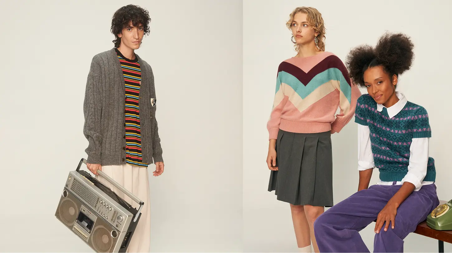 Una selezione di capi autentici degli anni ’80 ha ispirato la “capsule” in edizione limitata che comprende una selezione di capi d’archivio reinterpretati, già apparsi nella serie, ed altri creati in continuità con gli outfit originali. Alcuni di questi pezzi saranno indossati dai personaggi chiave della quinta stagione. Tra questi: Eleven con una felpa polo cropped, abbinata a joggers grigi morbidi e shorts rossi comfort-fit; Holly con una salopette in velluto floreale e patch a forma di cuore sul petto, indossata con un maglione colorato; Erica con un bomber a collo alto e maniche lunghe, un maglione con stampa all-over “Scottish Terrier”, pantaloni in cotone balloon-fit e uno zaino bicolore.