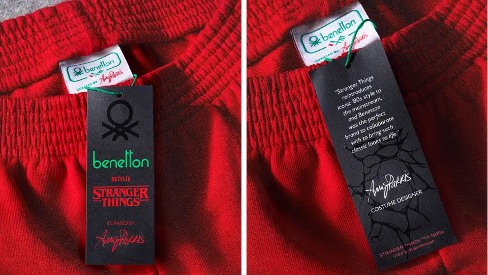 Sviluppata in stretta collaborazione con la costume designer di Stranger Things, Amy Parris, la collezione attinge direttamente dallo stile distintivo della serie e dalla ricca eredità anni ’80 di Benetton. Comprende una selezione di capi d’archivio reinterpretati, già apparsi nella serie o creati in continuità con gli outfit originali.