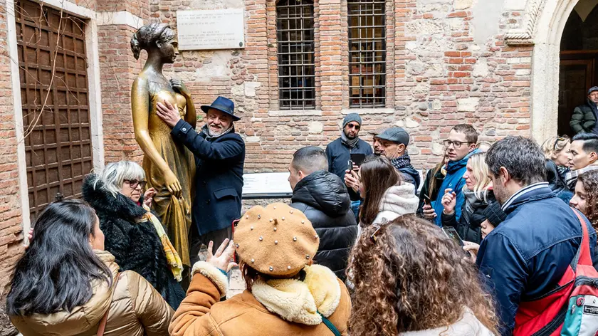 Il primo, infatti, risale a un centinaio di anni fa: frutto dell’intuizione dell’allora direttore dei musei civici veronesi, Antonio Avena, nell’occasione di alcuni lavori di ristrutturazione del palazzo trecentesco. Quanto invece alla statua, si tratta di una copia della scultura originale di Novello Finotti, collocata nel cortile 12 anni fa, dopo che le tante carezze dei visitatori l’avevano rovinata. Certo, sorte analoga è toccata anche alla copia, a sua volta rovinata – un seno è stato bucato nel 2024 – sempre a causa delle troppe carezze. Problemi che dovrebbero essere risolti, adesso, con le nuove limitazioni.