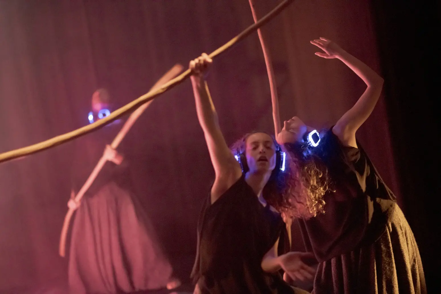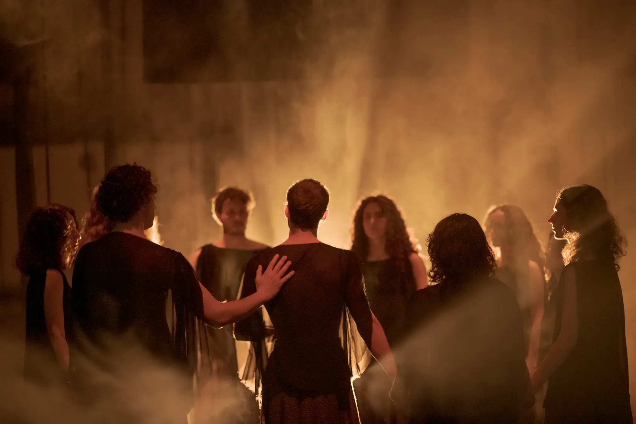Partendo dalla ricerca sullo stato di trance come strumento poetico e scenico, mutando il bosco risvegliato dalla primavera dell’opera di Euripide in un oscuro sabba/rave notturno, lo spettacolo di Anagoor indaga il senso di identità e di appartenenza: “Le Baccanti, sospese tra estasi e sovversione, si fanno portatrici di un’esperienza collettiva in cui i confini tra umano e divino si dissolvono. La loro non è solo celebrazione dell’alterità, ma un atto di trasformazione capace di mettere in discussione convenzioni sociali e strutture di potere” si legge nelle note di regia.