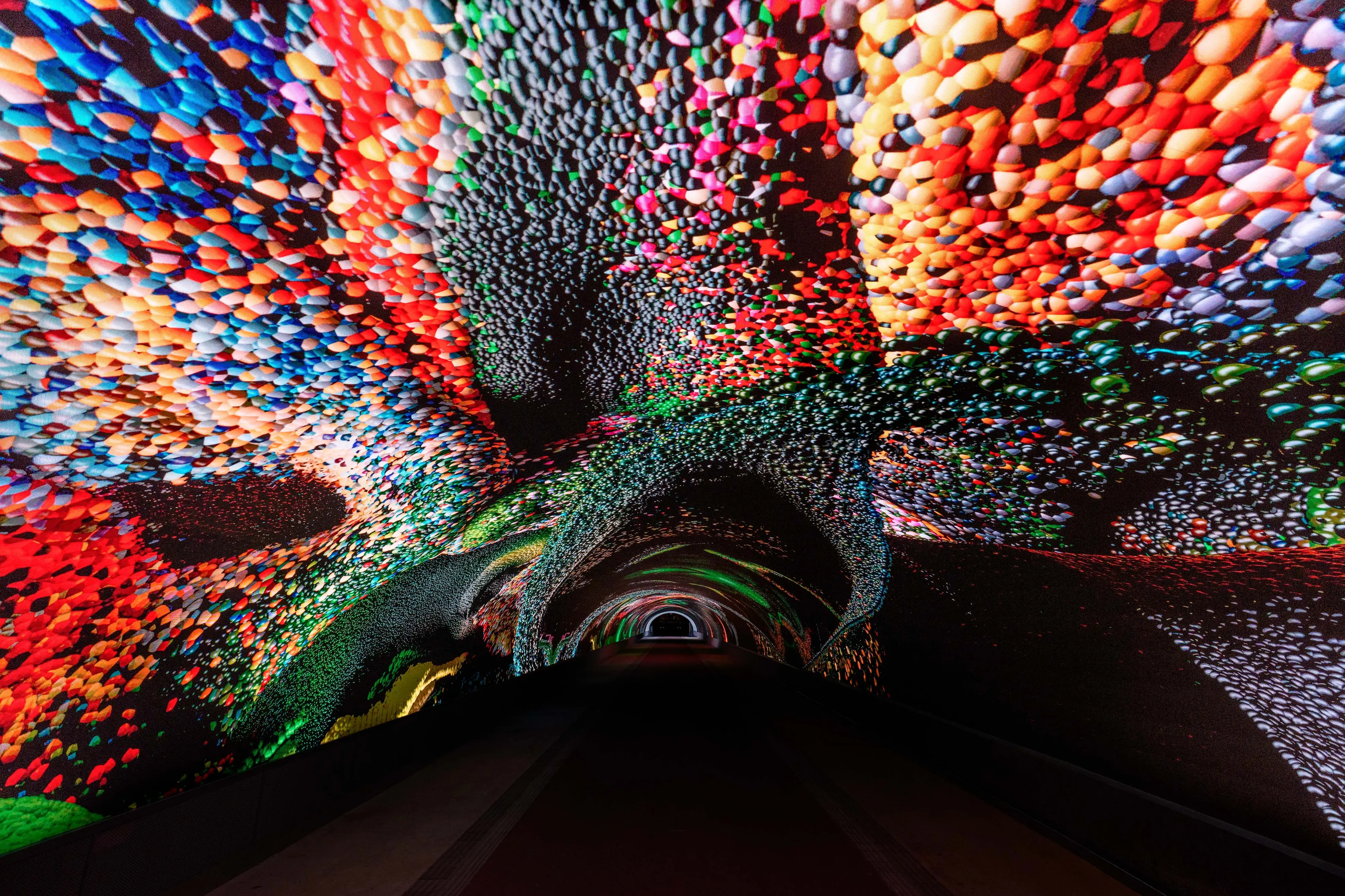 Il tunnel si muove, respira. È un organismo digitale che si evolve. È vivo. Sul palcoscenico curvo della volta di una galleria recuperata va in scena un nuovo paesaggio dinamico, mentre lo sguardo riceve i dati tradotti in visioni. Da martedì 16 dicembre la Digital Art Gallery (Dag) della Galleria Bombi a Gorizia si trasforma: da passaggio storico asburgico a laboratorio del futuro. Nasce la galleria d’arte digitale più grande d’Europa.