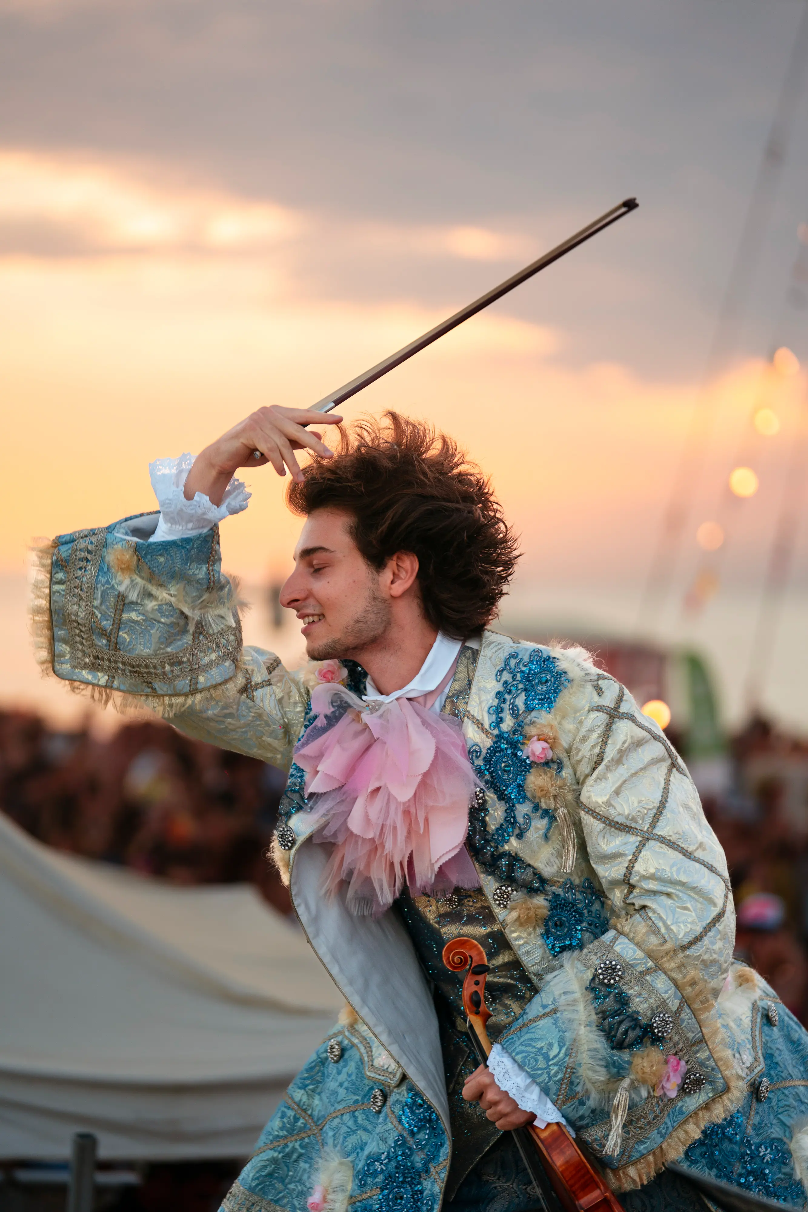 La festa proseguirà con il violino di Pierpaolo Foti, giovane artista triestino che sa muoversi tra classico e contemporaneo, trasformando le note in un dialogo diretto con il pubblico. Nel giardino, il profumo dei fiori si mescola a quello dei piatti locali e dei vini del territorio, curati dall’Unpli Fvg, mentre le persone si fermano a parlare, a condividere impressioni, a ritrovarsi in un’esperienza corale che va oltre la semplice visita a una mostra. Le luci soffuse dei vialetti, i riflessi sulle fontane e i lampioni che disegnano ombre eleganti sulle facciate antiche.