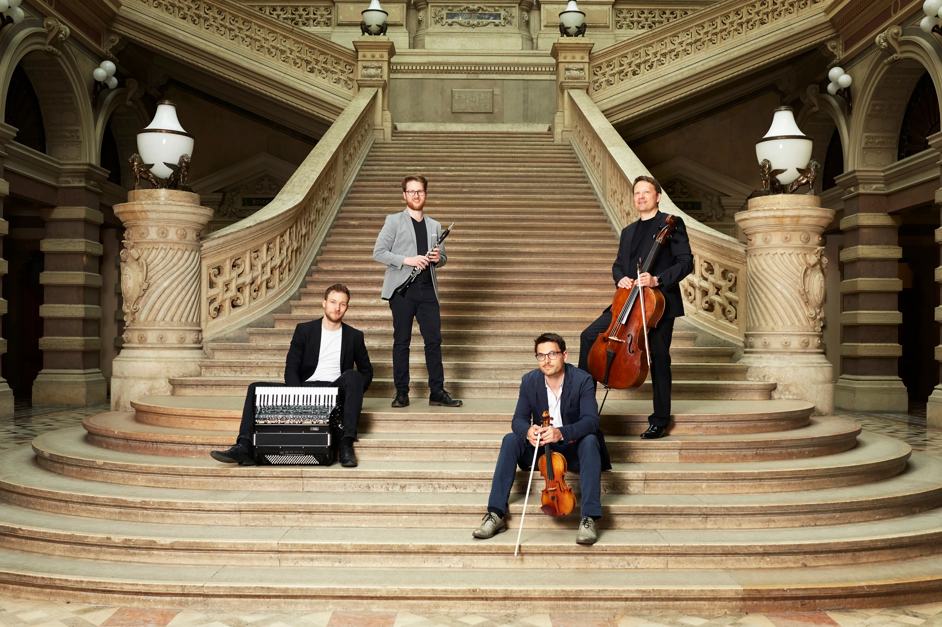 Il violino di Stefan Pöchhacker avvierà il primo filo sonoro, il clarinetto di Martin Rainer lo intreccerà, il violoncello di Michael Günther lo radicherà e la fisarmonica di Bogdan Laketic lo sorprenderà con colori inattesi. Un quartetto sinfonico che respira come una sola entità, e insieme traccia il filo invisibile che unisce le epoche, i luoghi e gli sguardi. La metafora del suonare insieme, perché anche una mostra è frutto di un grande lavoro di gruppo.