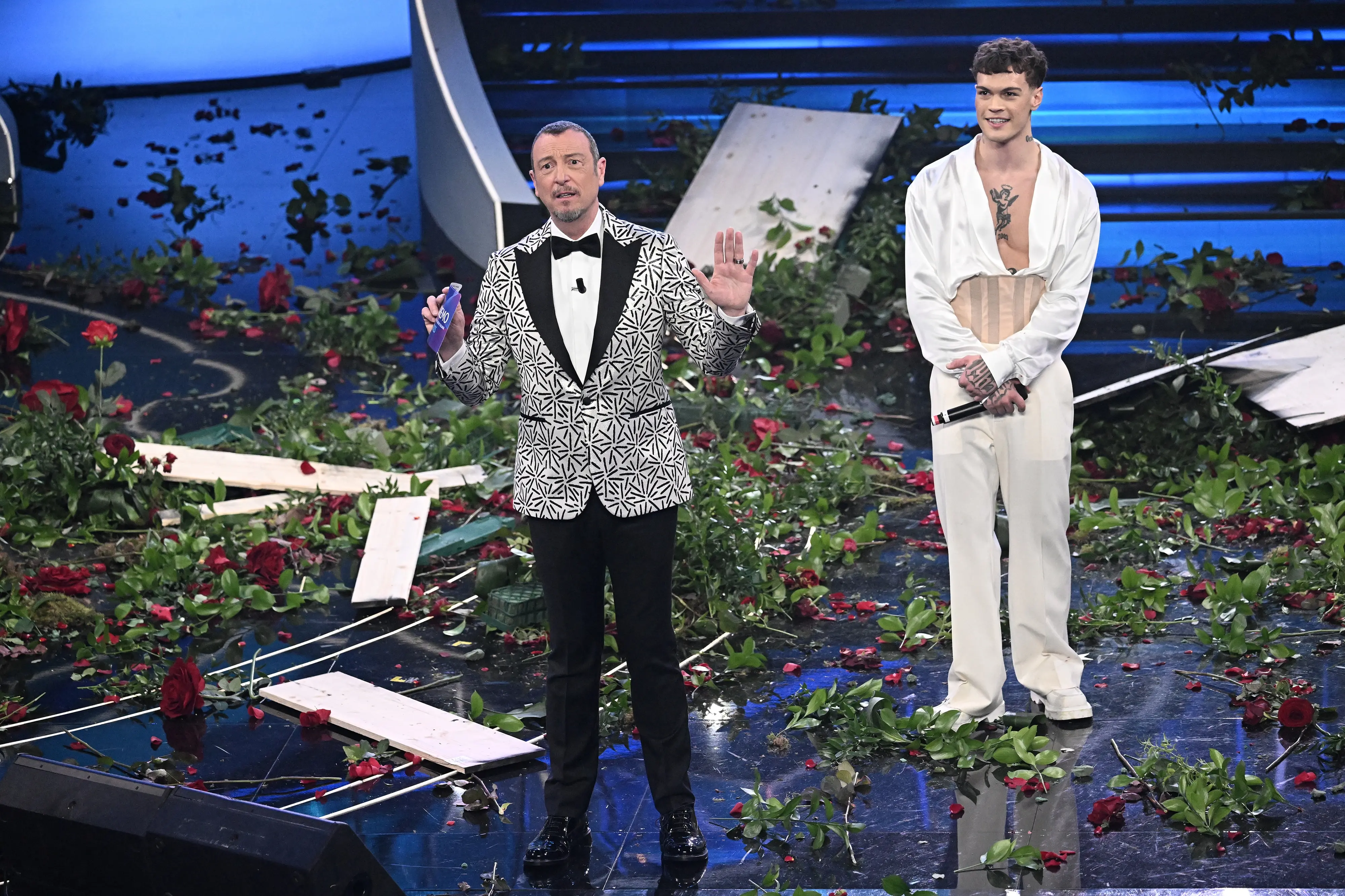 Conti ha preso in contropiede i brizzolati con alcuni nomi scovati nella modernità — e diciamo Sayf, Nayt, Luché, LDA e Aka 7even, Fulminacci, Eddie Brock, Chiello, Maria Antonietta e Colombre, Samurai Jay e Tredici Pietro (ve lo sveliamo: è il figlio di Gianni Morandi) — pareggiando con la quota matusa. L’amore è ancora cantato come al tempo della Cinquetti, segno inequivocabile che delle palpitazioni benigne ne abbiamo sempre bisogno.