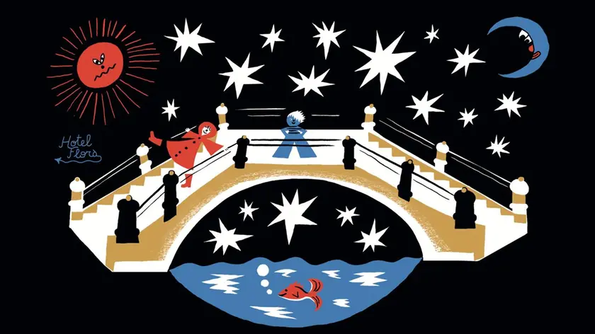 È la Venezia del “Turista immaginifico”, raffigurata nelle colorate illustrazioni di Sarah Mazzetti per il progetto a cura di Archivio.com. Scorci di una città generati dai ricordi e dalle dediche racchiusi in una decina di guestbook dell’Hotel Flora, a pochi passi da piazza San Marco. Frammenti di vita che la famiglia Romanelli custodisce gelosamente in quaderni che attraversano trenta anni di vita veneziana. I trenta precedenti, quando ufficialmente prese il via l’attività, continuano a vivere in tutti quei dettagli che lo rendono uno spazio essenzialmente immutato nel tempo.
