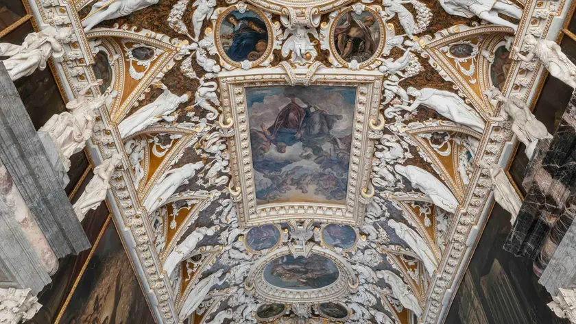 «Il nostro è stato l’ennesimo intervento su una struttura molto sensibile», spiega l’architetto Arianna Abbate del Servizio Tecnico della Fondazione Muve, «abbiamo enumerato decine di interventi manutentivi già nel diciassettesimo secolo, addirittura nel diciottesimo erano stati ingrigiti gli stucchi per far risaltare le dorature. Anche i dipinti hanno una stratificazione molto complessa, tanti artisti e artigiani nei secoli hanno tentato di restituirne un’unità. Infatti, molte parte dei dipinti non esistevano più e ne era stato commissionato il rifacimento». Particolarità nella particolarità, quello che c’è dietro il soffitto: una struttura tradizionale fatta di centine lignee con tappeti di canne, una scelta insolita per il peso degli stucchi.