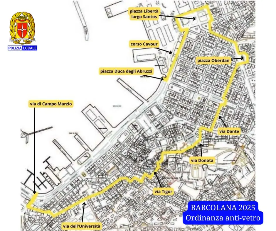 Fino a domenica 12 ottobre dalle 22 alle 5 è in vigore il divieto di detenere e consumare bevande di qualsiasi genere in bottiglie o contenitori di vetro, nonché alcolici (alcol da 6 gradi in su) in qualunque tipo di contenitore, su area pubblica o privata ad uso pubblico.