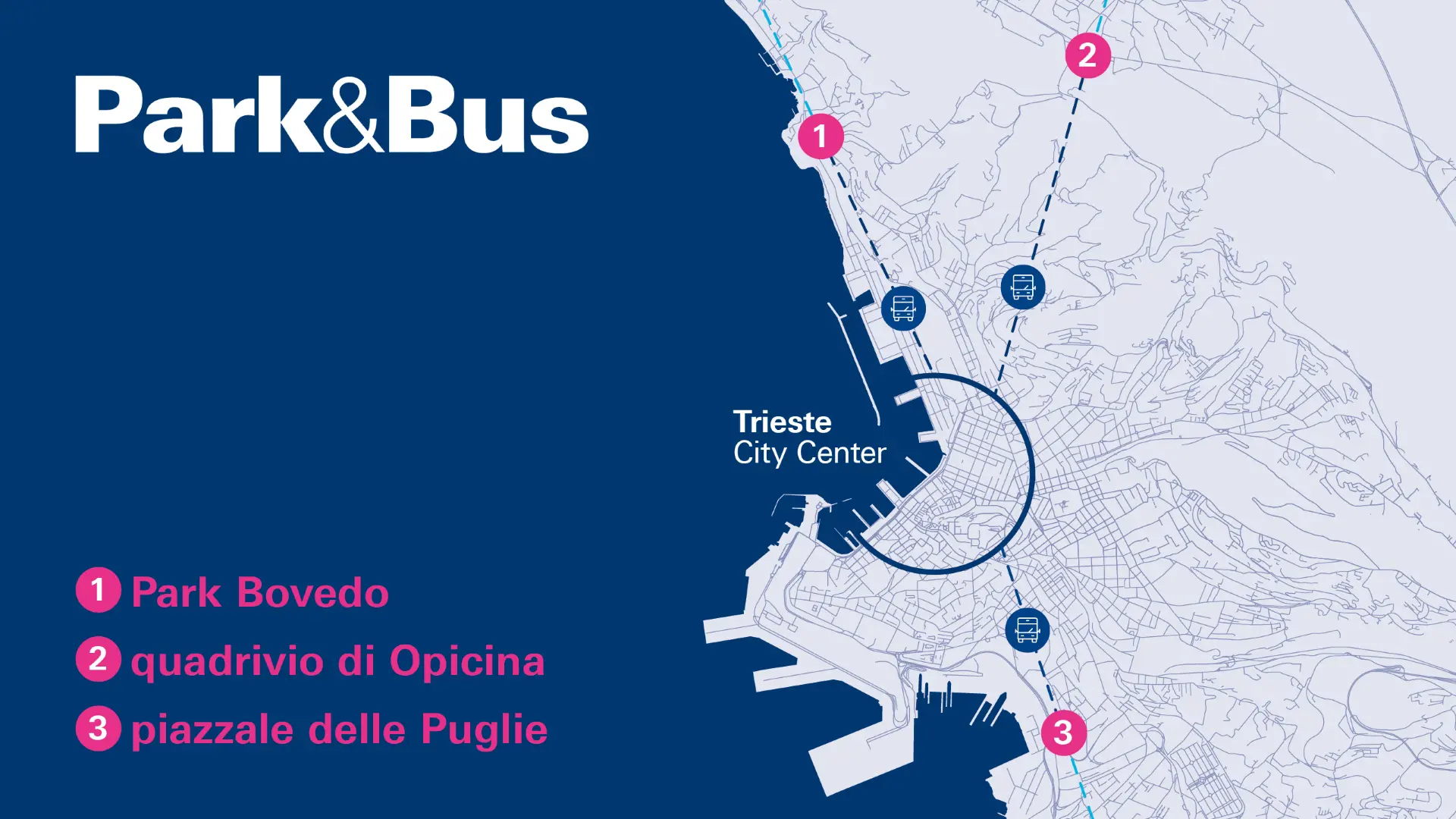 Torna anche quest’anno Park&Bus, iniziativa organizzata da Tpl Fvg e Trieste Trasporti in collaborazione con il Comune di Trieste: chi lo desidera può lasciare l’auto in uno dei parcheggi periferici riservati (Park Bovedo, quadrivio di Opicina e piazzale delle Puglie) e raggiungere il centro città in autobus.