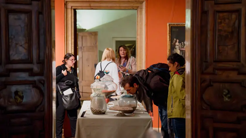 Una storia che a Palazzo Mocenigo sembra prendere vita nel laboratorio di un profumiere del Cinquecento tra ampolle, alambicchi e strumenti che restituiscono un sapere sospeso tra scienza, empiria e immaginazione. Recipienti in vetro di Murano, materie prime di origine vegetale, minerale e animale, essenze da riconoscere e una mappa “annusabile” delle Vie delle Spezie trasformano la storia mercantile della Serenissima in esperienza sensoriale, riportando il profumo al suo ruolo originario di pratica quotidiana, gesto colto, linguaggio sociale.